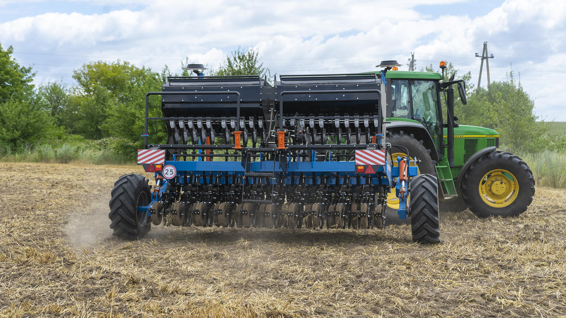 — Сеялка выполняет посев за один проход, быстро и точно.